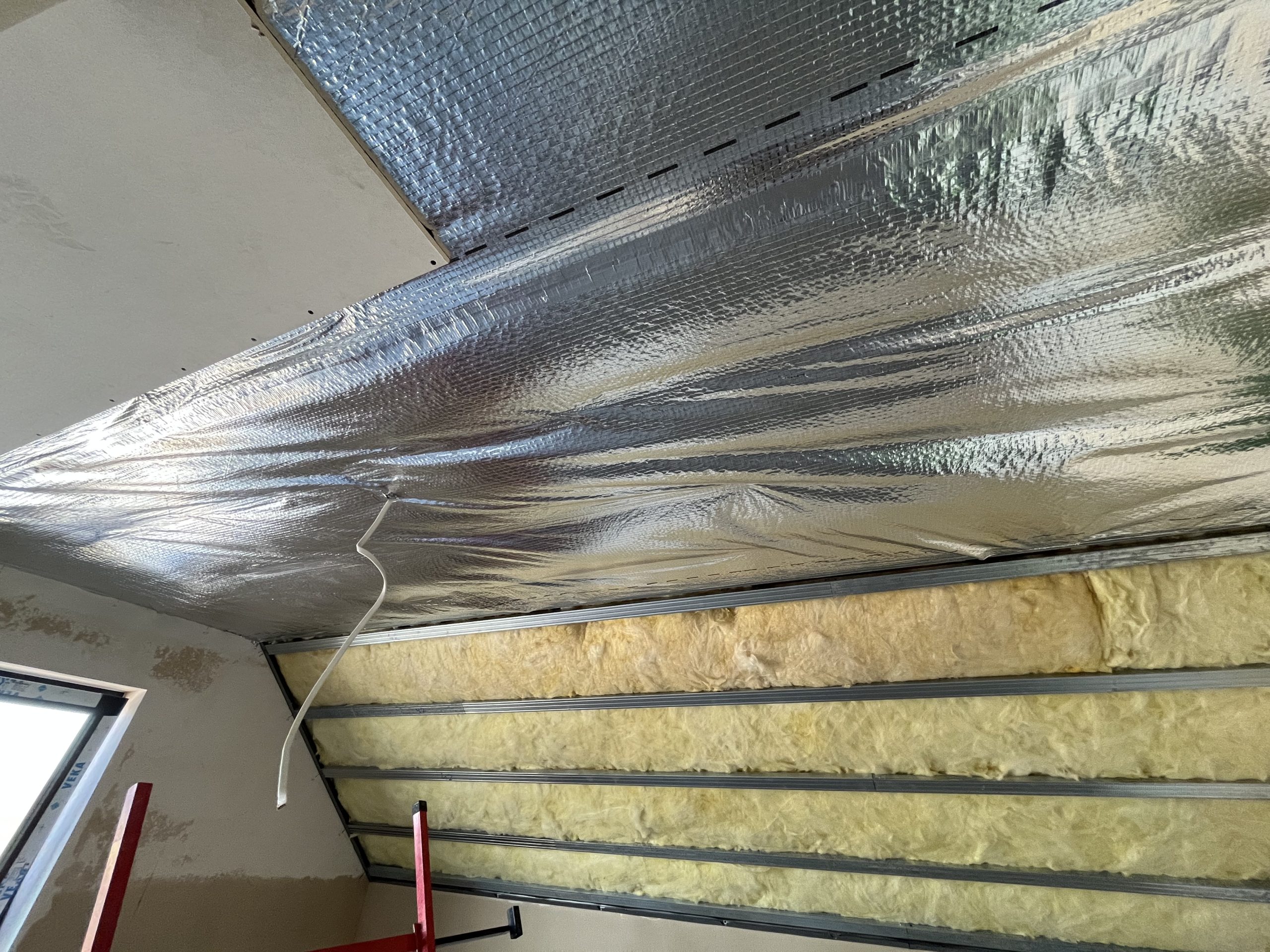 - docieplenie stropu (30 cm wełna mineralna) + sufity z płyt GK