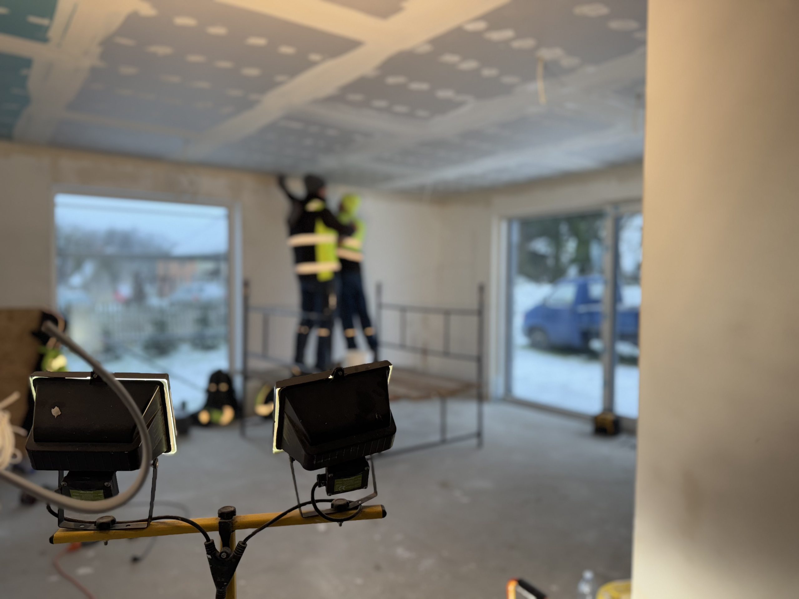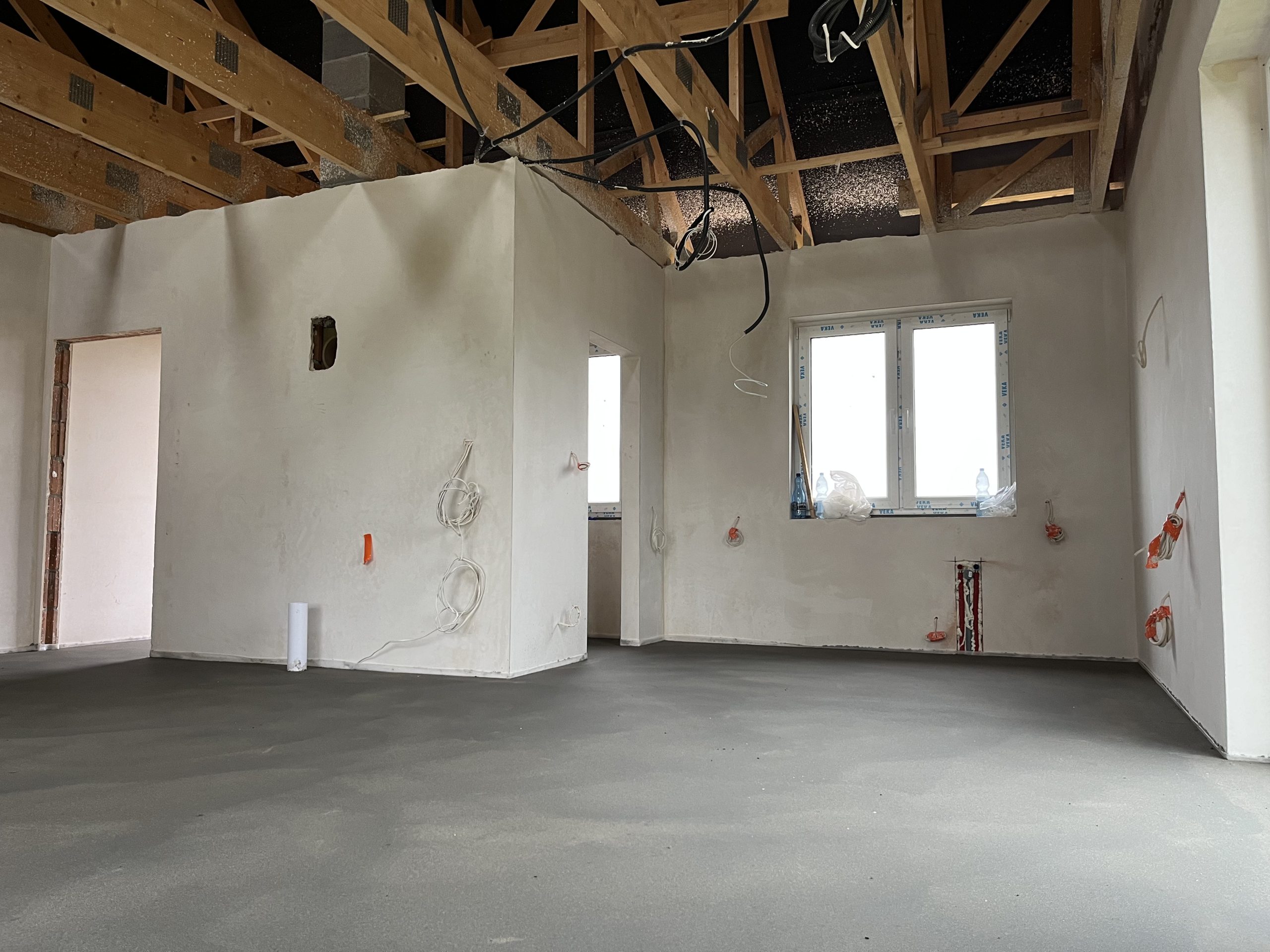 - docieplenie stropu (30 cm wełna mineralna) + sufity z płyt GK