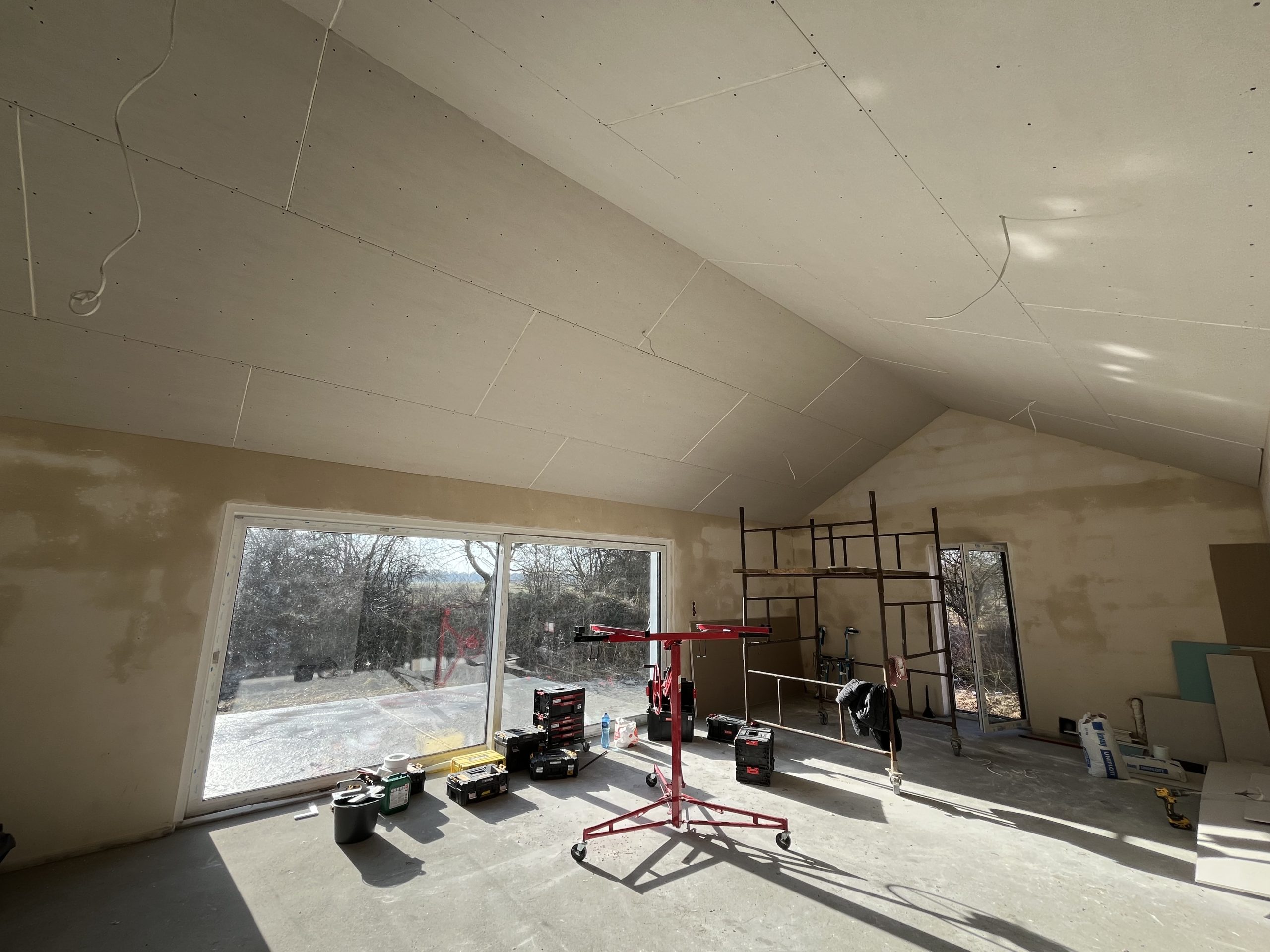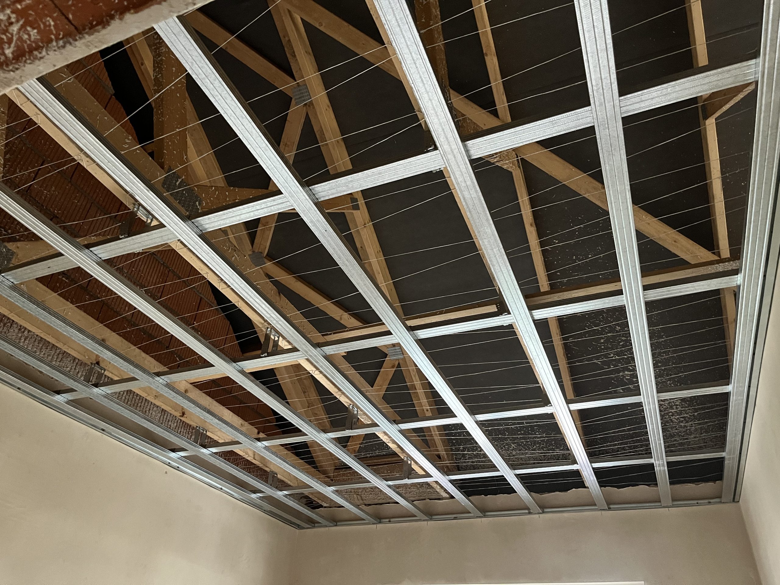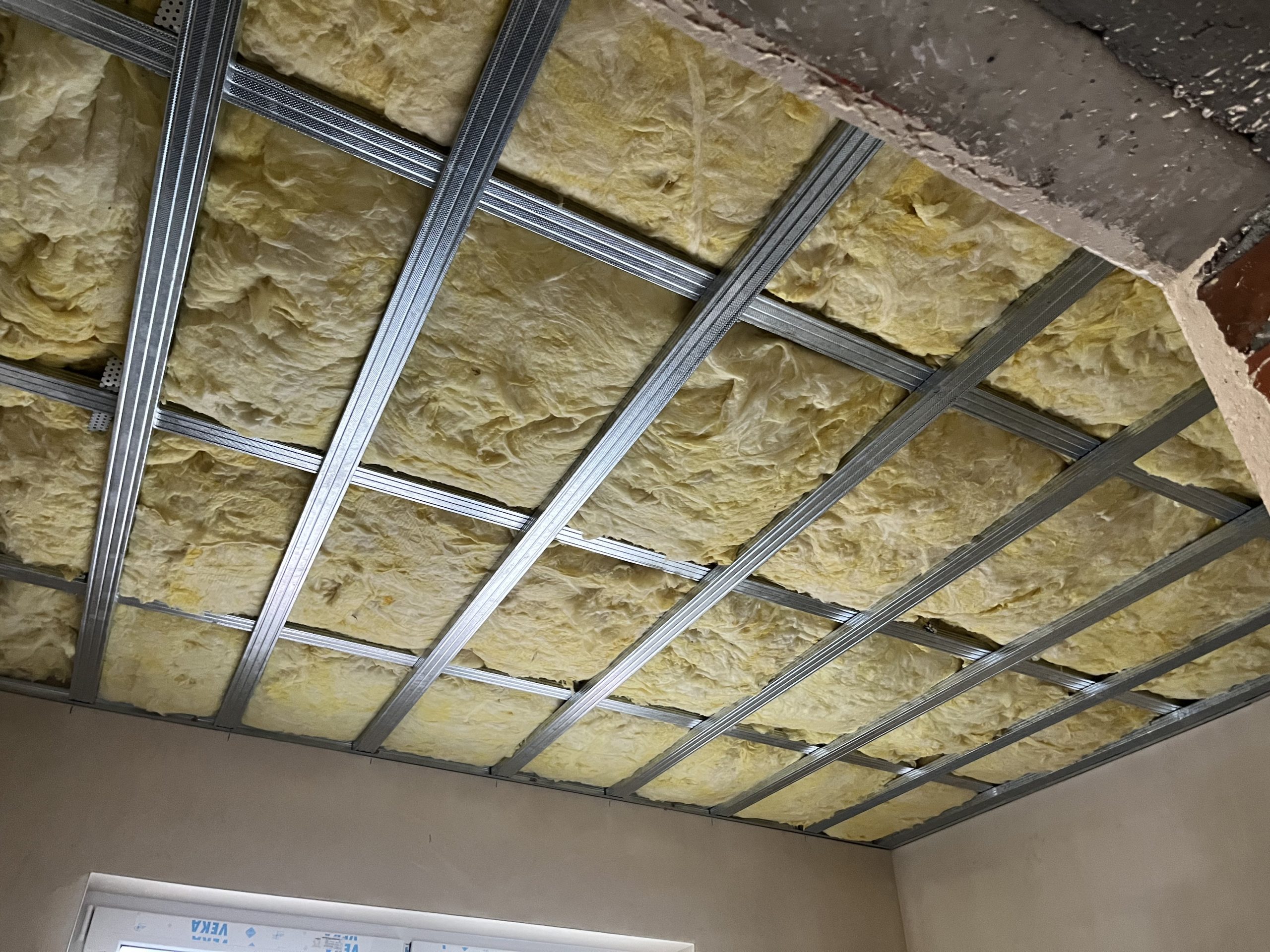 - docieplenie stropu (30 cm wełna mineralna) + sufity z płyt GK